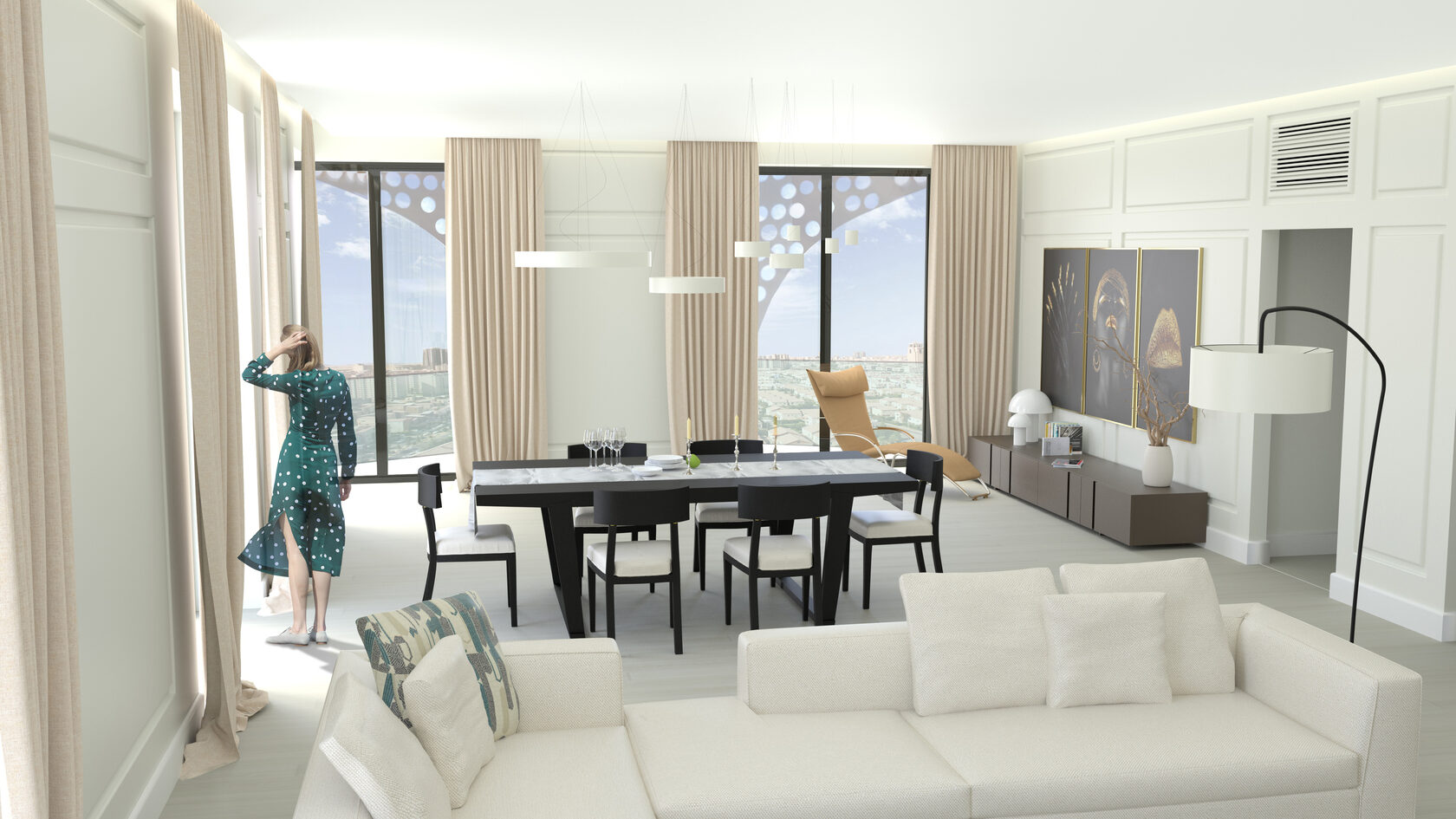 Интерьеры, разработанные для этого комплекса, соединили в себе европейский комфорт с интуитивно угадываемой культурой жизни Эрбиля. Разработка документации стадии РД потребовала от компании максимального знания строительного рынка Эрбиля.